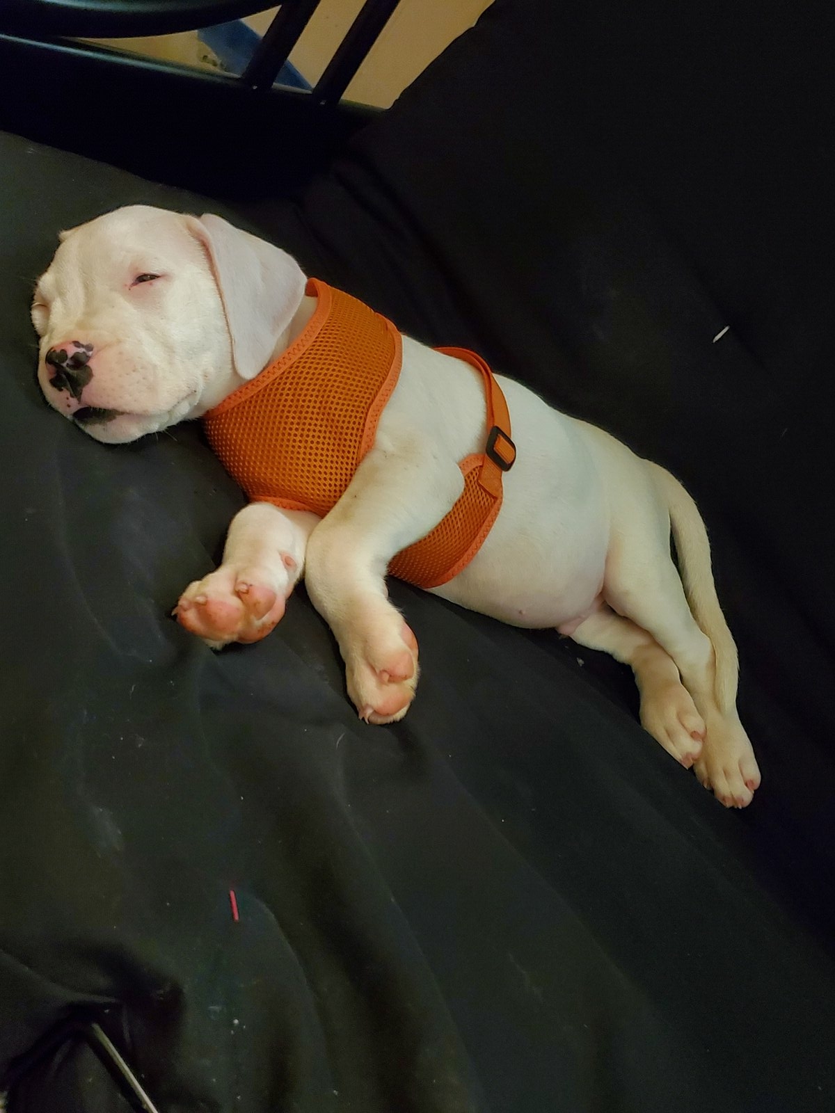 Zozo was born in Jan 2021. He is a UKC Registered Dogo Argentino. He is sweet and good with other animals and children but has a healthy guardian tendency when it comes to his family.